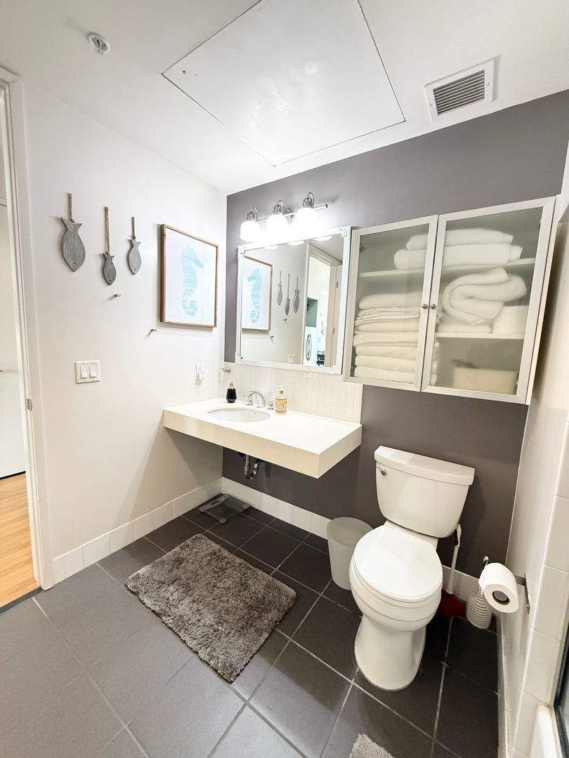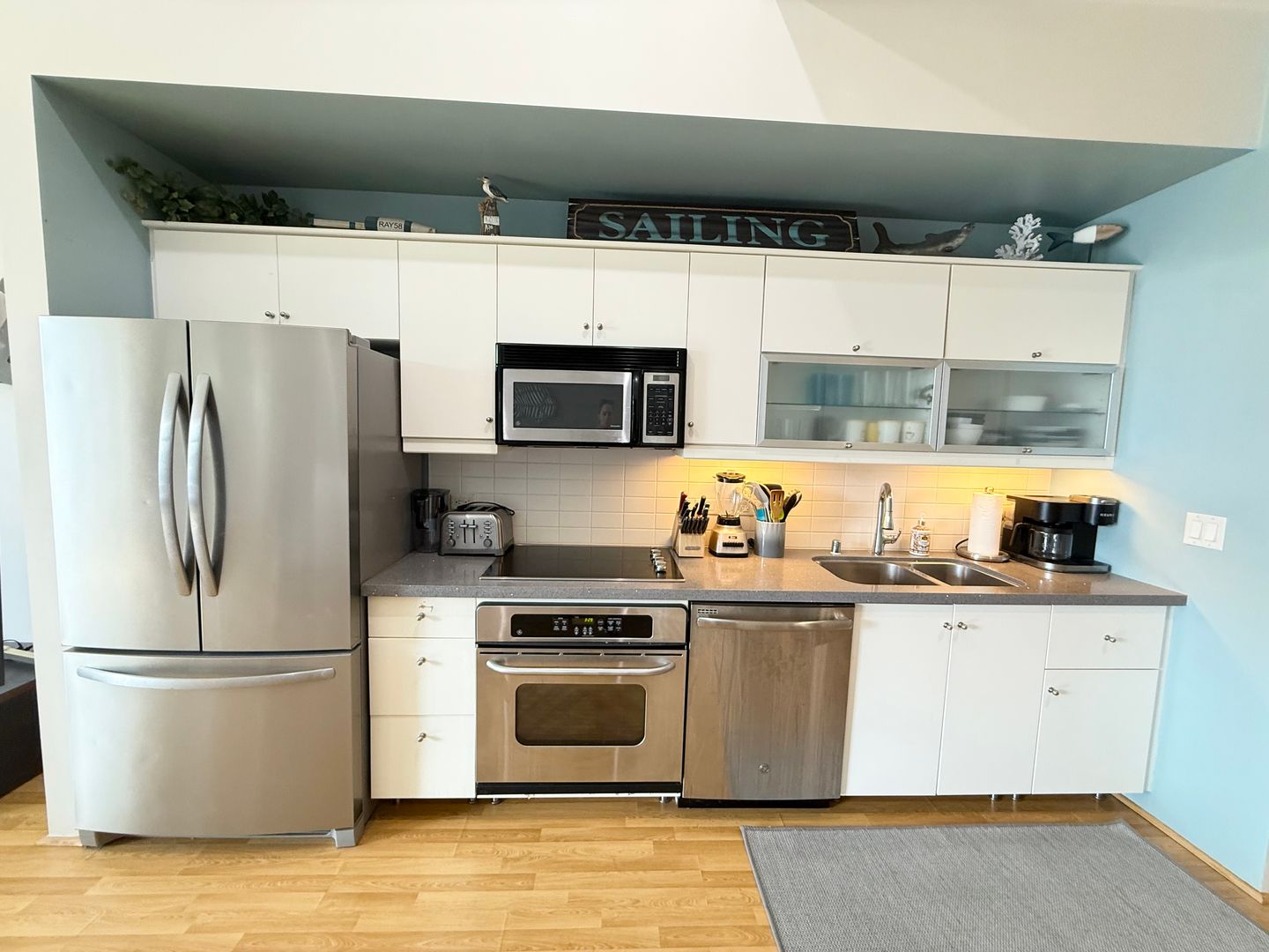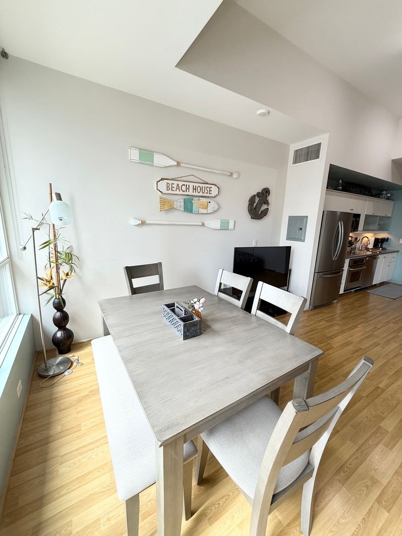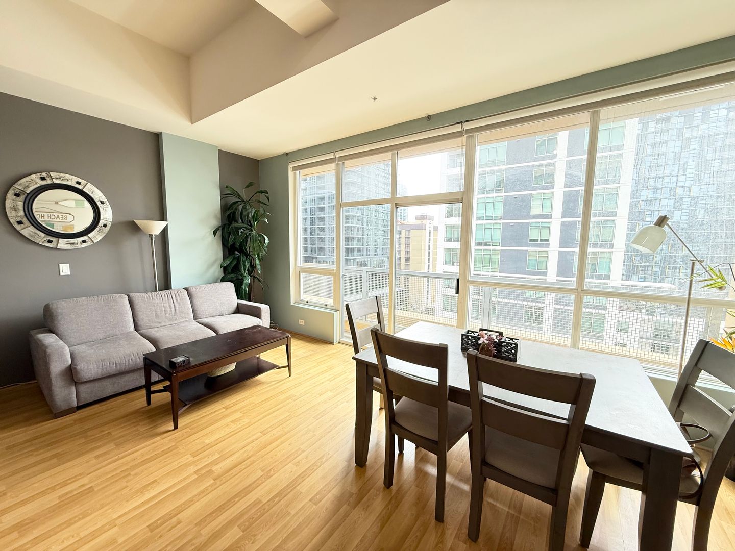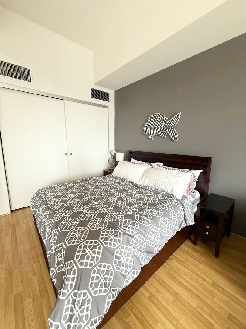 Fabulous open Loft plan with high ceilings with custom wood floors; floor to ceiling windows with City & Bay views. Stainless Steel appliances in fully equipped kitchen. New Cal-King Bed & New Queen Sofa Sleeper. Dining room table w/six chairs; New Smart TV.  Full size W/D. Spacious bathroom with tub/ shower. 1 assigned underground parking space. Pets considered on a case-by-case basis and require additional deposit. Renter’s insurance required.
